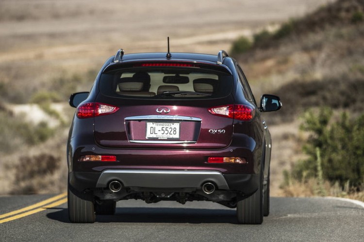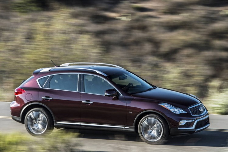 Сбоку кроссовер унаследовал некоторые черты от более старшей модели QX70. Дверные ручки имеют хромированное покрытие, а фирменные диски с изогнутыми спицами гармонично дополняют общий стиль. Задние фонари узкие и соединены между собой планкой, которая может не всем прийтись по вкусу. Хромированный элемент на задней части немного нарушает общую элегантность.