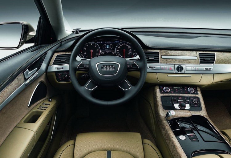Архитектура передней панели в салоне претерпела небольшие изменения — центральная консоль стала более плавной. Система MMI была заново настроена и теперь включает новые функции, такие как регулировка жесткости подвески, чувствительности рулевого управления, а также камера заднего вида и другие возможности.