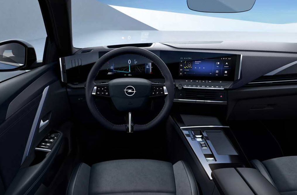 Внутреннее пространство Opel Astra L выделяется современным дизайном цифровой панели Pure Panel, которая включает два дисплея размером 10 дюймов: