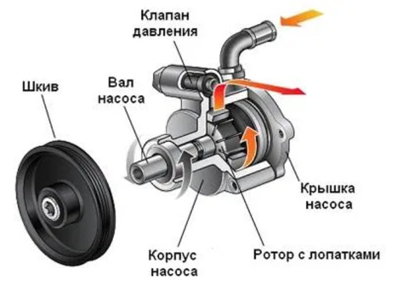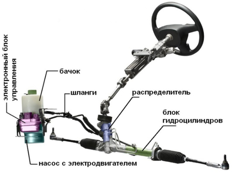 Гидравлический усилитель в системе рулевого управления состоит из нескольких ключевых компонентов: