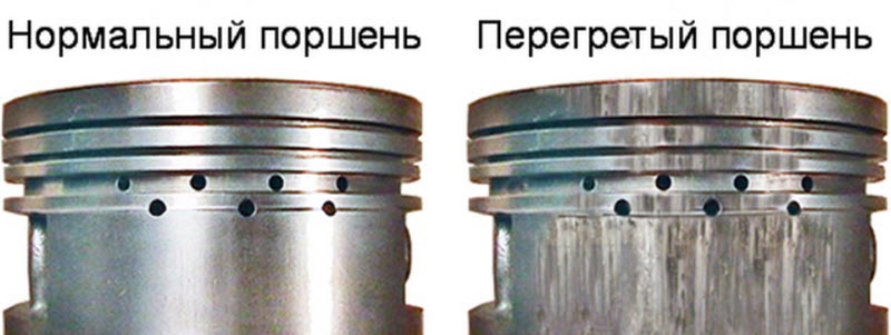 В результате может возникнуть либо масляное голодание, когда масляная пленка просто раздавливается, либо превышение размеров поршня по сравнению с диаметром цилиндра.