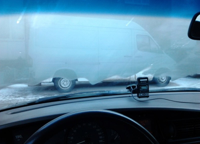 Именно холод часто мешает желанию открыть окна, однако это можно сделать заранее, когда вы покидаете машину. Излишняя влага уйдет, и при понижении температуры в остывающем автомобиле плотность тумана станет меньше.
