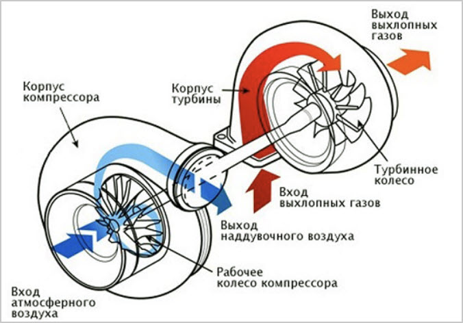| Повреждение подшипников турбины | Увеличенный люфт вала турбины, нарушение герметичности уплотнений | Замена картриджа турбины или ремонт турбины с заменой подшипников |