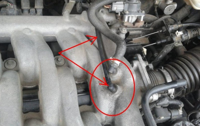 Если от впускного коллектора отходит шланг, который соединен с устройством, подозреваемым в утечке, его можно просто зажать или согнуть. Это остановит подсос, что можно будет заметить по стабилизации работы двигателя.