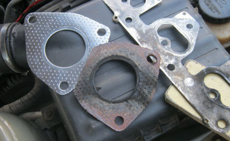 Наиболее часто герметичность теряется в соединении между коллектором и головкой блока, которое уплотнено прокладкой. Со временем эта прокладка теряет свою упругость, а затяжка шпилек коллектора ослабевает.