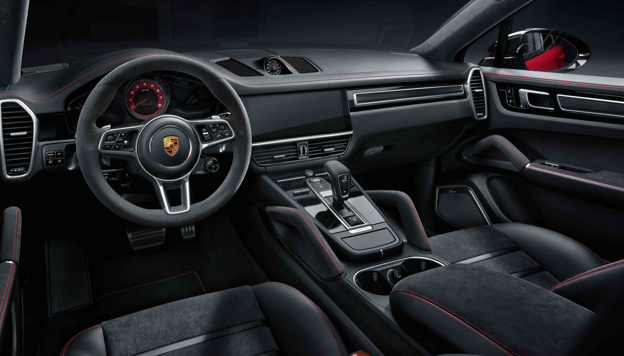 В интерьере нового Porsche Cayenne изменений не произошло. В качестве основных отделочных материалов используются алькантара и экокожа.