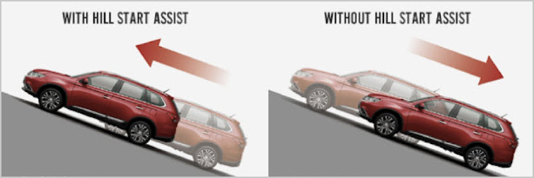 Hill Hold Assist — это система помощи водителю, которая предотвращает откат автомобиля назад в течение нескольких секунд после того, как водитель отпускает педаль тормоза на склоне. Это короткое время удержания позволяет водителю переключиться с педали тормоза на педаль газа, не беспокоясь о скатывании автомобиля назад.