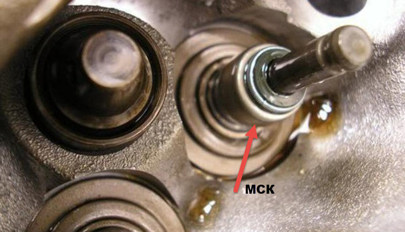 Если в первом случае масло, которое сгорает, поднимается по стенкам цилиндров, то при другой неисправности – нарушении герметичности газораспределительного механизма – оно попадает через впускные клапаны. На этом пути располагаются сальники стеблей, которые также известны как маслосъемные колпачки.