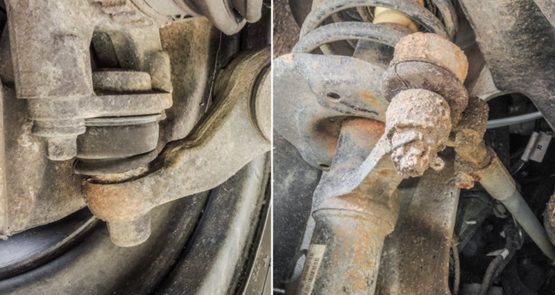 Разрывы в чехлах легко заметить по тому, как смазка вытекает наружу и смешивается с пылью. Если удалить грязь, трещины и повреждения становятся видимыми.