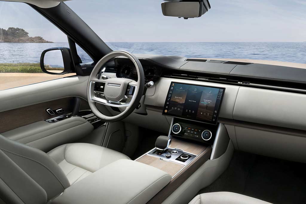 Роскошный интерьер: Внутреннее оформление Range Rover 2022 сочетает в себе высококачественные материалы, такие как натуральная кожа, дерево и металл, а также современные технологии, включая 13,1-дюймовый сенсорный экран с системой инфоразвлечений Pivi Pro. Кроме того, в автомобиле предусмотрены индивидуальные настройки для каждого пассажира, включая массажные функции для сидений.