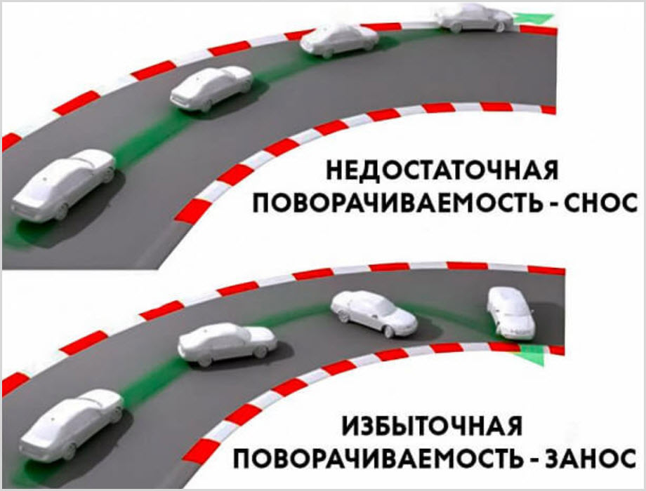 Из теории автомобилестроения известно, что во время движения могут возникать два нежелательных состояния – избыточная и недостаточная поворачиваемость.