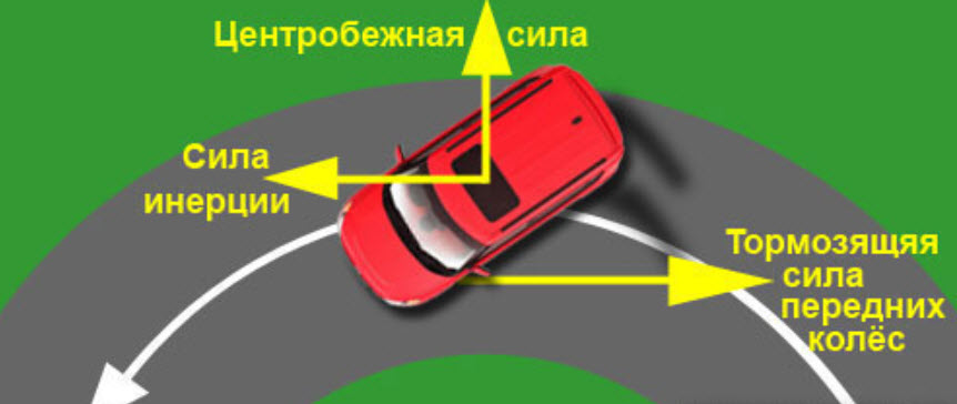 Если передние колёса работают на пределе своих возможностей, система не будет вмешиваться, так как им и так сложно, а аккуратно притормозит заднее внутреннее колесо. Обычно этого достаточно для того, чтобы восстановить стабильную траекторию движения.