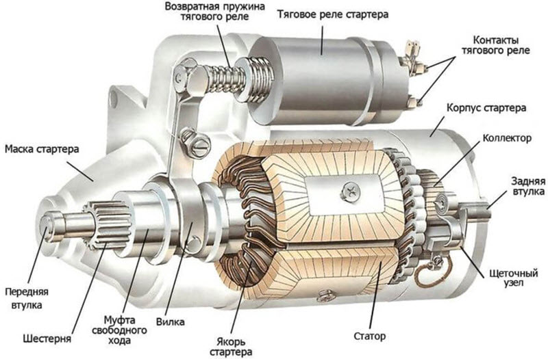 Успех будет гарантирован, если обмотки, контакты и бендикс находятся в исправном состоянии, а проблема заключается лишь в отсутствии напряжения на управляющем входе.