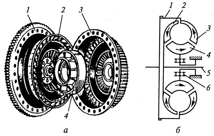 Передача крутящего момента осуществляется благодаря движению потоков трансмиссионной жидкости и давлению, возникающему в результате их движения.