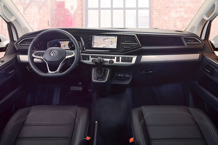 При повороте ключа зажигания в новой Каравелле загорается практически вся панель приборов. В более дорогих версиях автомобиля установлен 10-дюймовый широкоформатный экран, который создает эффект синей подсветки.