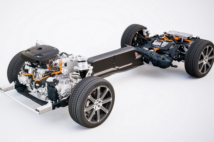 Важнейшим элементом нового гибрида является тележка. Как уже упоминалось, она отличается от привычных моделей. Это особенно заметно для тех, кто не знаком с прошлогодним предложением – XC90 T8 Twin Engine, с которым новинка разделяет платформу.