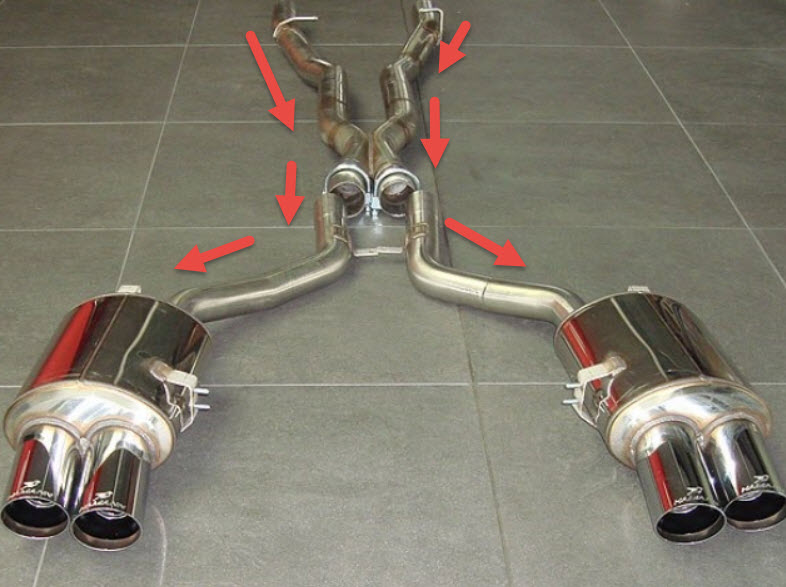 Разделяя выхлопные газы между двумя трубами вместо одной, двойная выхлопная система снижает противодавление в двигателе. Это улучшает его работу, что приводит к повышению производительности и эффективности. Каждый цилиндр двигателя генерирует мощность за счёт сжигания топливовоздушной смеси.