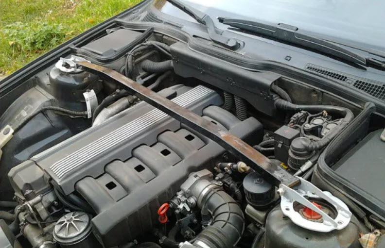 Иногда на эту распорку добавляют дополнительные крепления, например, для горизонтальной полки щита или даже опор силового агрегата. В результате автомобиль значительно выигрывает в жёсткости кузова, что положительно сказывается на управляемости, особенно если дополнительно перенастроить подвеску.