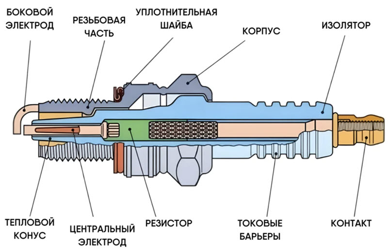 Эффективность работы двигателя внутреннего сгорания напрямую зависит от состояния этих компонентов. Искра, возникающая между двумя электродами – центральным и боковым, инициирует процесс сгорания.