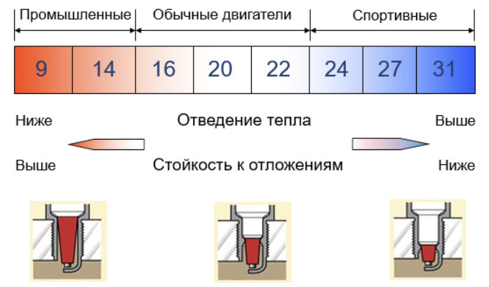 Этот параметр указывает на температурный диапазон, в котором свеча может эффективно работать. На верхней границе этого диапазона происходит калильное зажигание.
