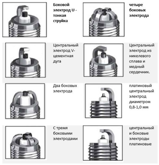 Первые свечи зажигания имели всего один электрод, тогда как в современных вариантах их количество может достигать четырех. Увеличение числа электродов не связано с улучшением производительности.